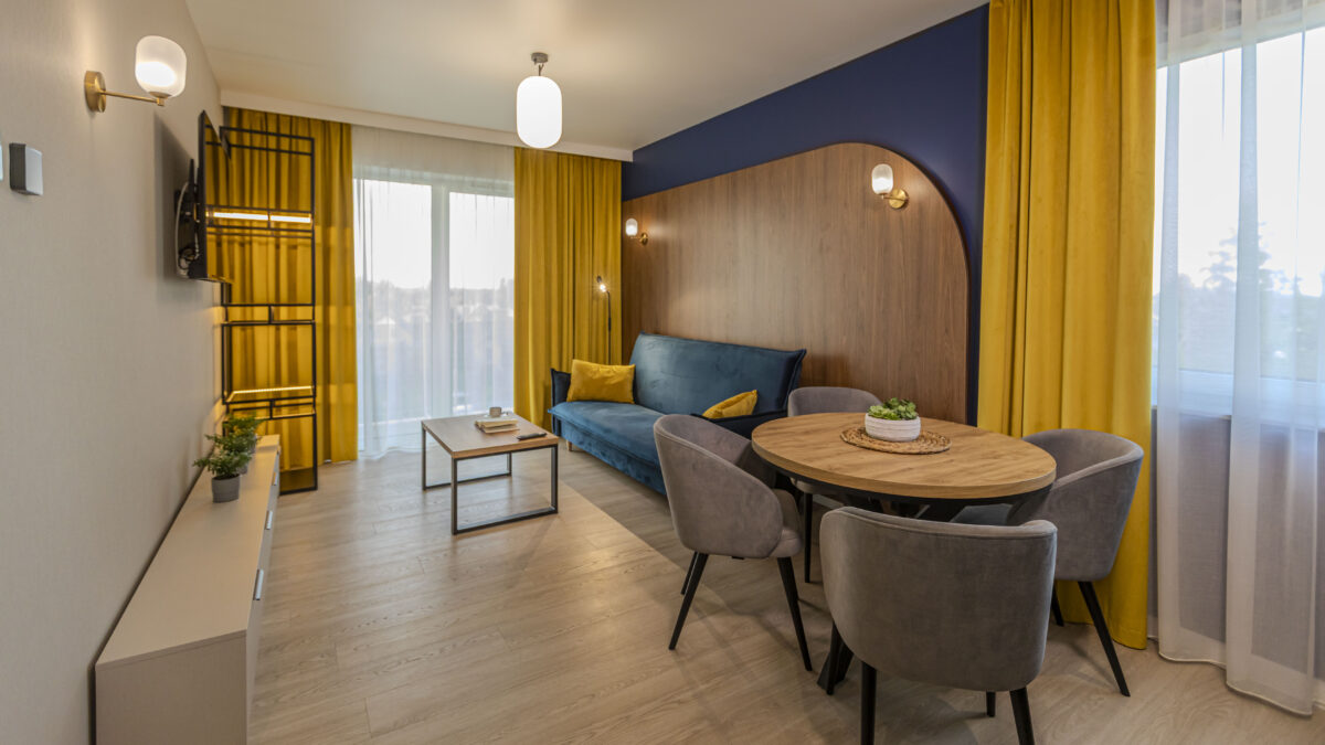 Pokoje apartamentowe w obiekcie to połączenie natury z nowoczesnością, charakter każdego z nich sprawia iż nasi goście przy każdej wizycie mogą poznać funkcjonalność i styl, przy zachowaniu wysokiego standardu wyposażenia.