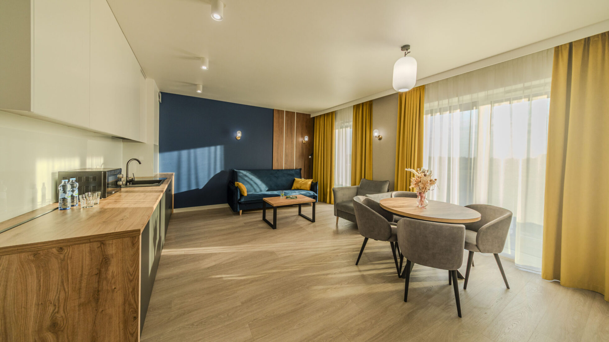 - kompletnie wyposażony aneks kuchenny i jadalnia