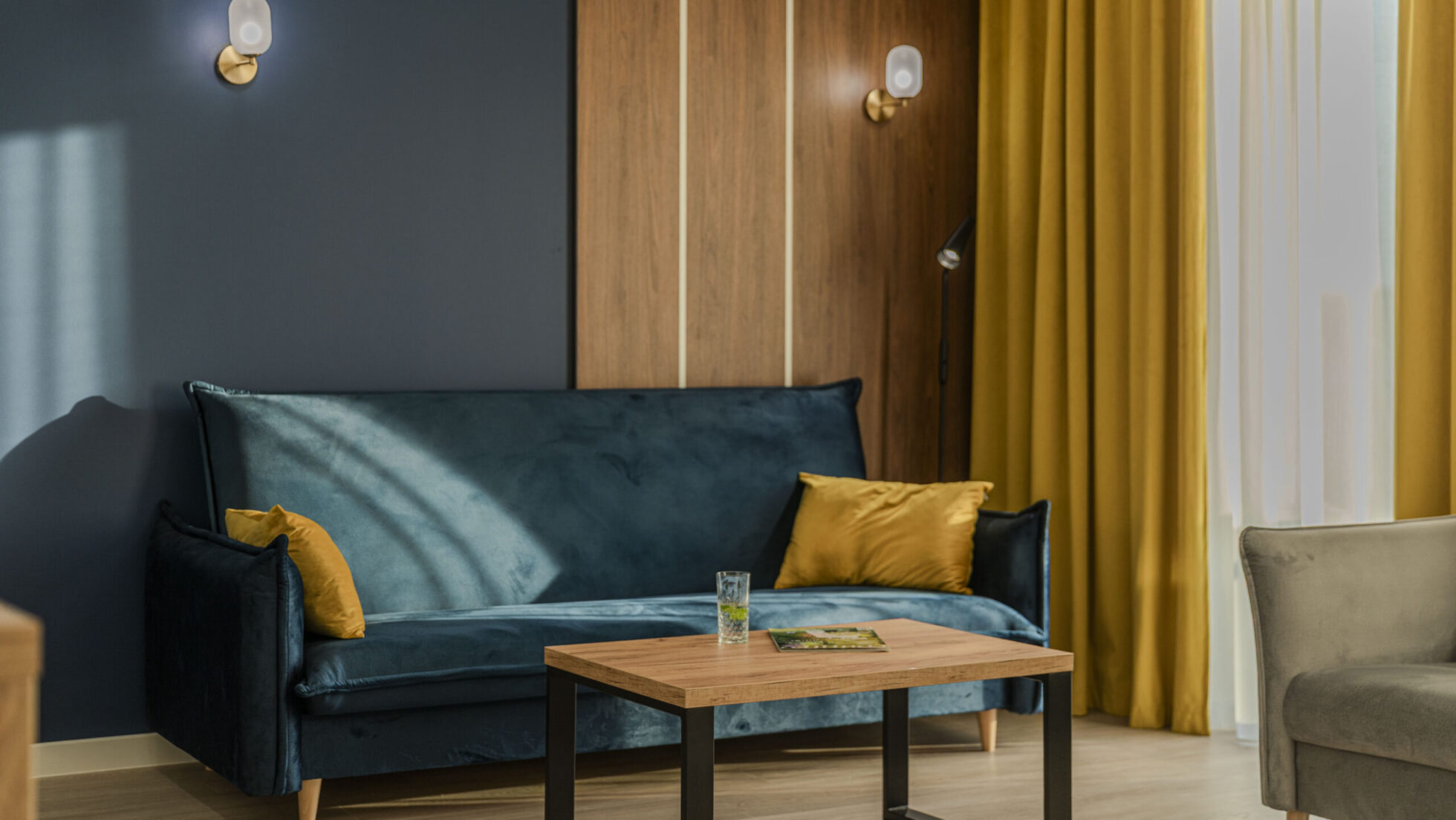 - rozkładana sofa w salonie